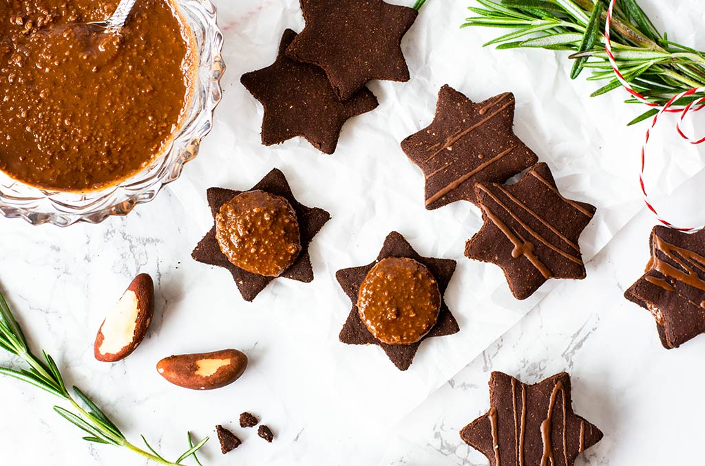 - Hviezdičky pokropte čokoládou alebo zmiešajte rozpustenú čokoládu s pomletými orechmi a touto zmesou hviezdičky ozdobte.