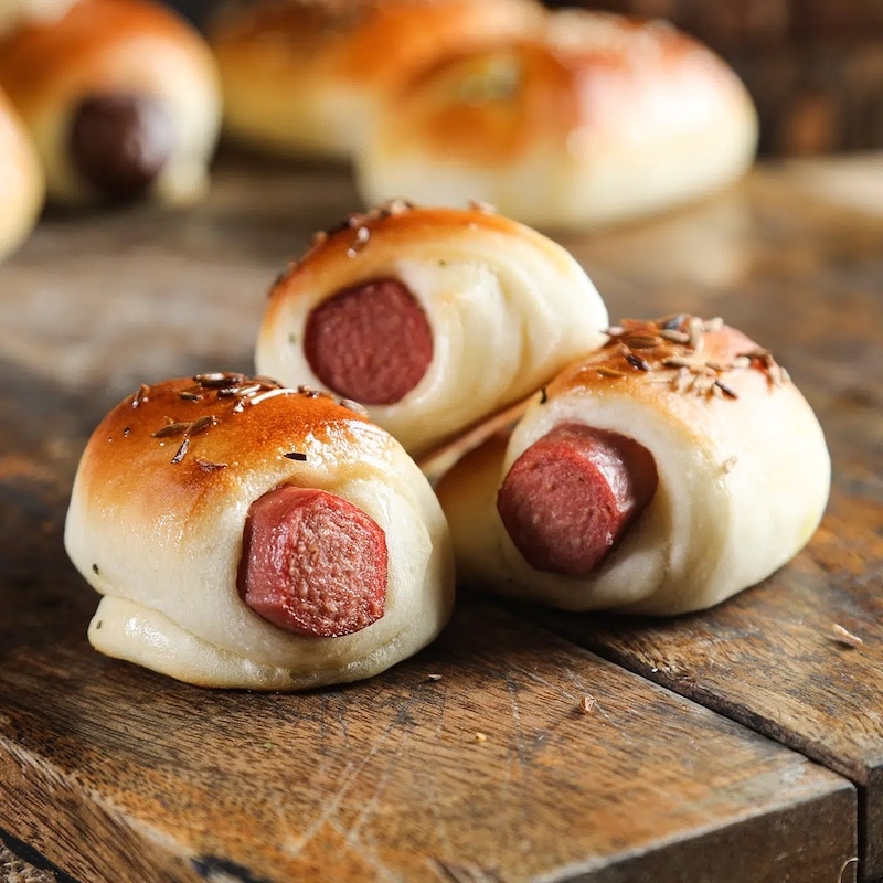 - Zabalené párky skladajte do formy na stojato, nechávajte okolo nich malý priestor, pri pečení sa ešte „rozrastú“.