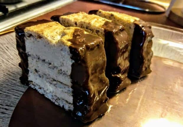 - Nakrájajte na rovnomerné obdĺžniky a namáčajte jeden alebo oba kraje do čokolády.