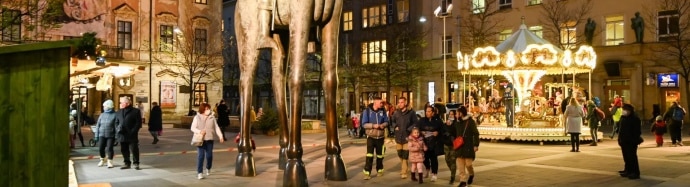 Túžite po romantickej adventnej atmosfére? V tom prípade zájdite na nádvorie Starej radnice. Okrem dizajnových vianočných trhov tu nájdete obľúbenú hrajúcu hviezdu, ktorá je tiež fotopointom, aj príjemné posedenie pri hrejivom varenom víne alebo medovine. Tešiť sa môžete aj na vystúpenie umelcov.
