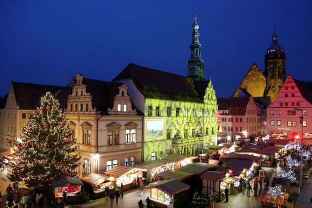 Pirnský adventný jarmok je veľmi známy práve svojim jedinečným konceptom osvetlenia a nádhernými projekciami na fasády domov. Trh ponúka tiež kulinárske lahôdky, ručné práce a ďalšie vianočné špeciality. Sprievodný program obstarávajú spevácke zbory, tanečné skupiny a ďalší umelci.