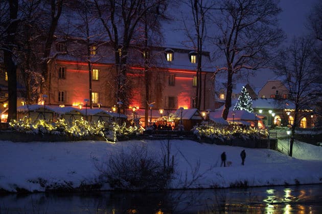 Ďalšie nádherné vianočné trhy v Regensburgu nájdete na zámku Schloss St Emmeram , ktorý sa nachádza necelých pätnásť minút chôdze od hlavnej vlakovej stanice.
