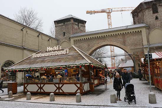 Roztomilý trh na pozadí starobylej mestskej brány, obklopený skvelými obchodmi a barmi, ponúka množstvo medzinárodných produktov, od bavorských špecialít až po originálne vianočné darčeky.