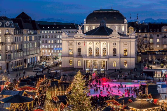 Priamo pri zürišskej opere na námestí Sechseläutenplatz v Bellevue sa nachádza jeden z ďalších najobľúbenejších vianočných trhov v Zürichu – Wienachtsdorf čiže Zürišská vianočná dedinka.