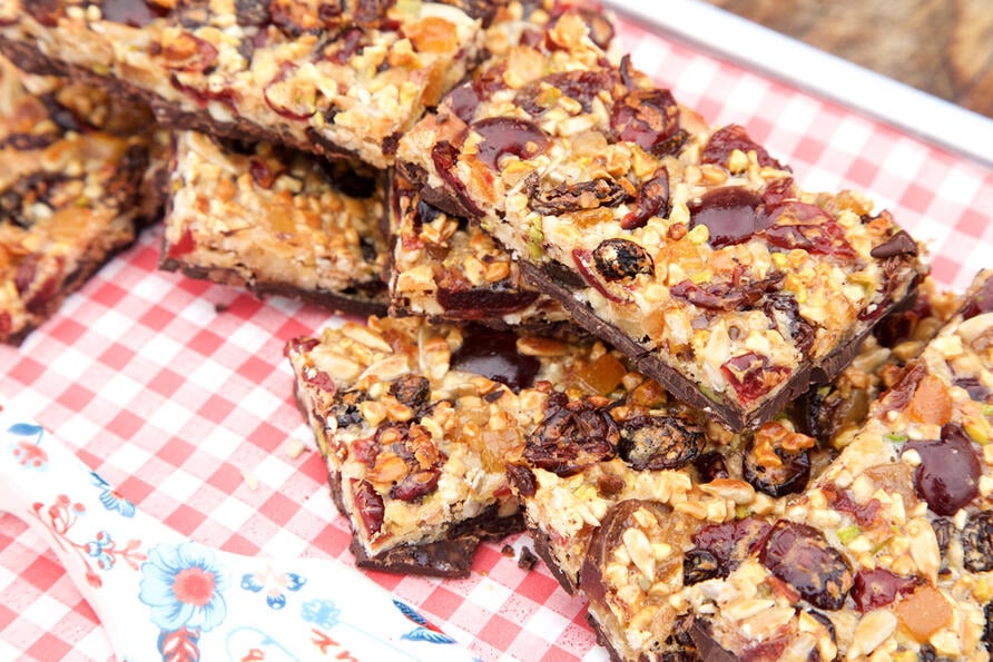 • Orechy si nasekáme na väčšie kúsky, pridáme k nim kandovanú kôru, múku, med, cukor a vypracujeme na cesto.